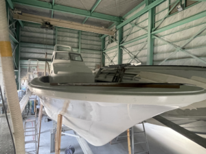 現在39fのモニター艇を建造中です!ようやく船体が型枠から外されました。